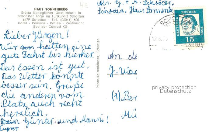 73645132 alte Postkarte Schotten Hessen Haus Sonnenberg Gastraum Kaminzimmer postalisch gelaufen Erhaltung siehe scans [WerneD78] KatCode: 11110006535016