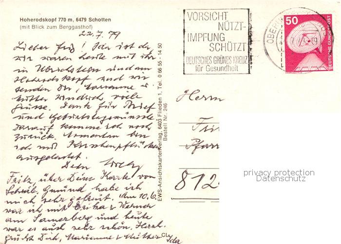 73803613 alte Postkarte Schotten Hessen Hoherodskopf Berggasthof Sendeanlagen postalisch gelaufen Erhaltung siehe scans [WerneD78] KatCode: 11110006535016
