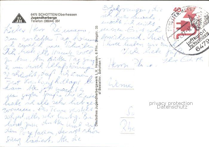 72549445 Schotten Hessen Jugendherberge postalisch nicht gelaufen Erhaltung siehe scans [AndreD76 kv022box] Andr Katcode 11110006535016