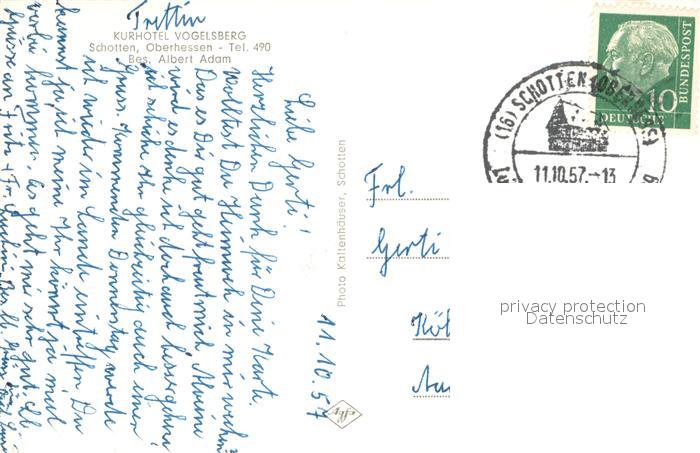 73663673 alte Postkarte Schotten Hessen Kurhaus Vogelsberg Kurhotel Bar postalisch gelaufen Erhaltung siehe scans [LiesaD40] KatCode: 11110006535016