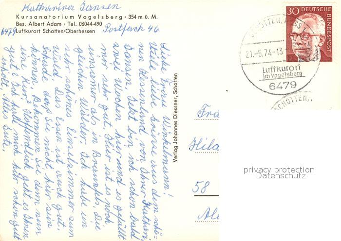 73080621 alte Postkarte Schotten Hessen Kursanatorium Vogelsberg postalisch gelaufen Erhaltung siehe scans [KathaD81] KatCode: 11110006535016