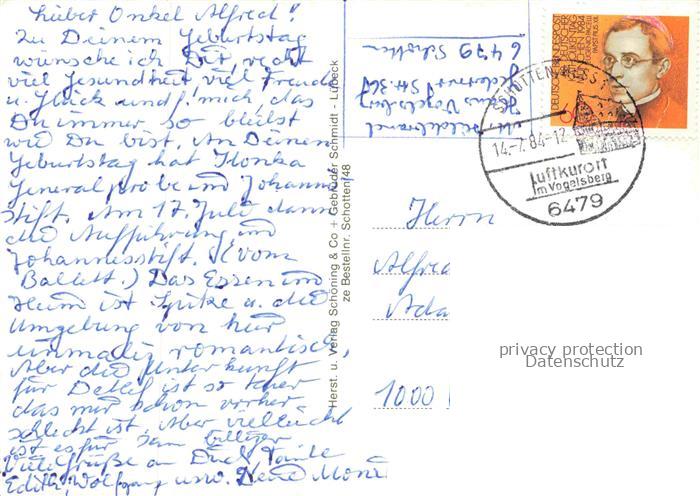 74138820 alte Postkarte Schotten Hessen Marktstrasse Teilansicht Stadtkirche Alteburg Heimatmuseum postalisch gelaufen Erhaltung siehe scans [FriedD77] KatCode: 11110006535016