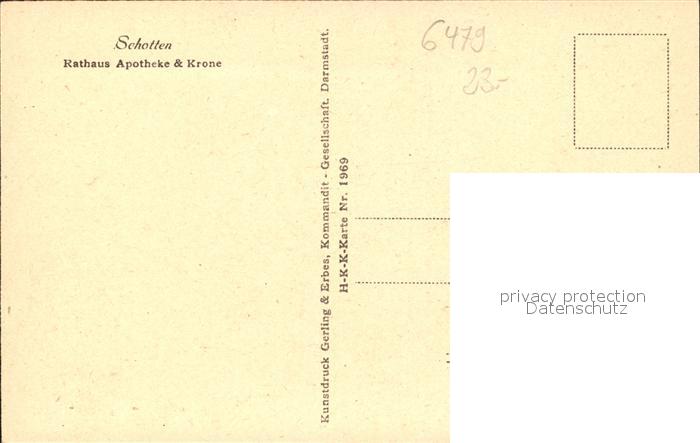 72122160 Schotten Hessen Rathaus Apotheke Krone Kuenstlerkarte HKK Karte Nr 1969 postalisch nicht gelaufen Erhaltung siehe scans KatCode: 11110006535016