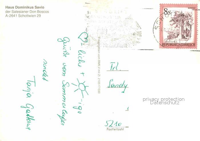 72699920 alte Postkarte Schottwien Haus Dominikus Savio der Salesianer Don Boscos Fliegeraufnahme postalisch gelaufen Erhaltung siehe scans [FriedD77] KatCode: 11390122031833