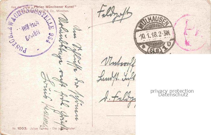 74117243 alte Postkarte SCHRAG Julius Kuenstlerkarte Die junge Mutter Muenchen postalisch gelaufen Feldpost – Stempel Erhaltung siehe scans [SanaeD93] KatCode: 22240000003210