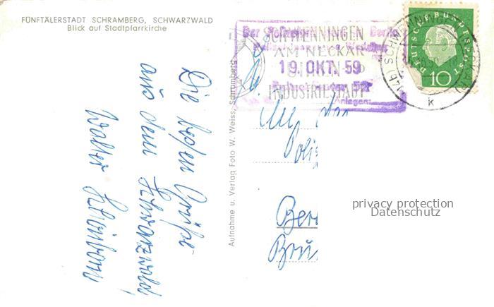 74060412 Schramberg BW Blick auf die Stadtpfarrkirche postalisch gelaufen Erhaltung siehe scans [FriedD77] alte Postkarte Frie Katcode 11110008325053