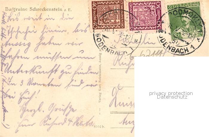old postcard Schreckenstein Burg Strekov Dampfer postalisch gelaufen Erhaltung siehe scans [PaolaD17]