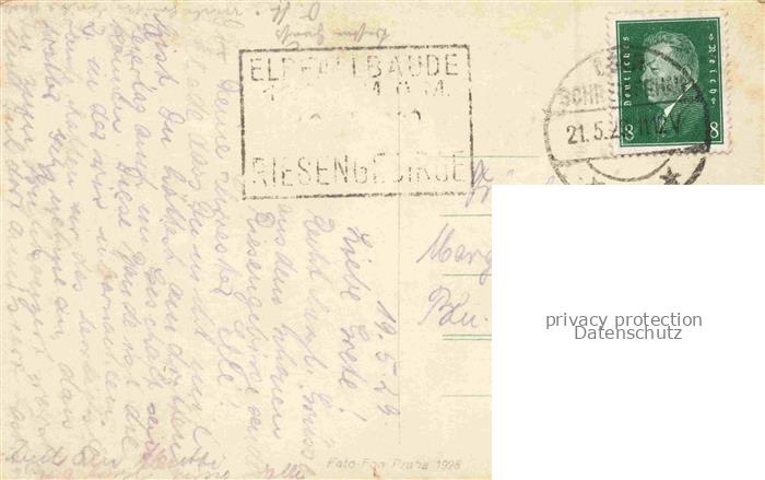 74030351 old postcard Schreiberhau Szklarska Poreba Riesengebirge PL Elbefall Wasserfall Bergbaude postalisch gelaufen Erhaltung siehe scans [FriedD77] KatCode: 11410