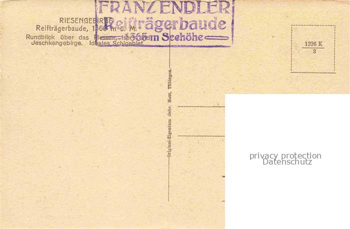 74044848 Schreiberhau Szklarska Poreba Riesengebirge PL Reiftraegerbaude postalisch nicht gelaufen Erhaltung siehe scans [FriedD77] KatCode: 11410