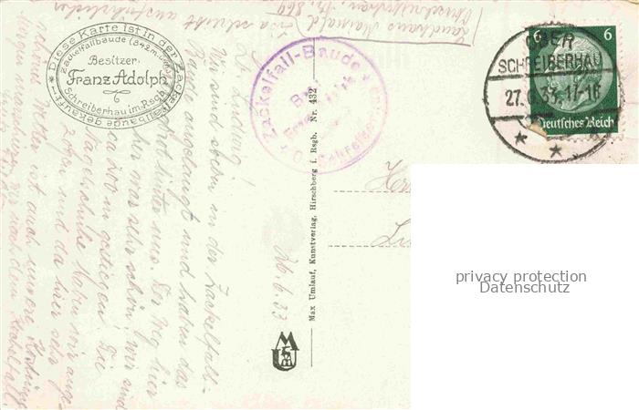 74029938 old postcard Schreiberhau Szklarska Poreba Riesengebirge PL Zackelfallbaude postalisch gelaufen Erhaltung siehe scans [FriedD77] KatCode: 11410