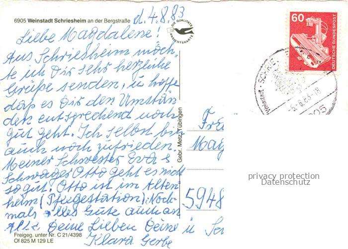 74048778 alte Postkarte Schriesheim Fliegeraufnahme postalisch gelaufen Erhaltung siehe scans [WerneD78] KatCode: 11110008226082