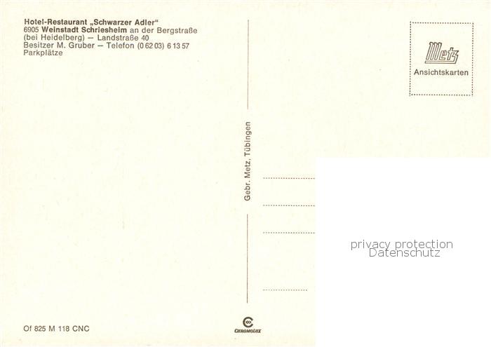 73866736 Schriesheim Hotel Restaurant Schwarzer Adeler Gastube Weinfass Panorama postalisch nicht gelaufen Erhaltung siehe scans [WerneD78] KatCode: 11110008226082