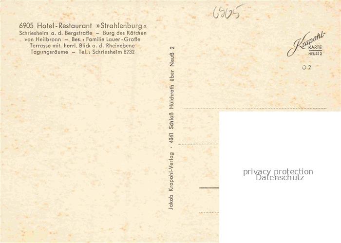 74048876 Schriesheim Hotel Restaurant Strahlenburg Panorama postalisch nicht gelaufen Erhaltung siehe scans [WerneD78] KatCode: 11110008226082