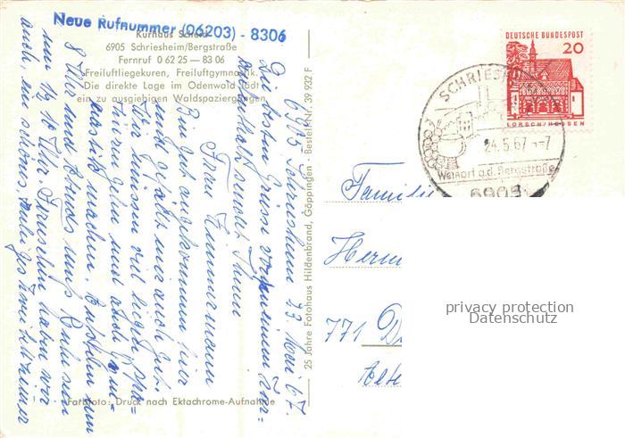 74048792 alte Postkarte Schriesheim Kurhaus Scheid Gastraeume Park postalisch gelaufen Erhaltung siehe scans [WerneD78] KatCode: 11110008226082