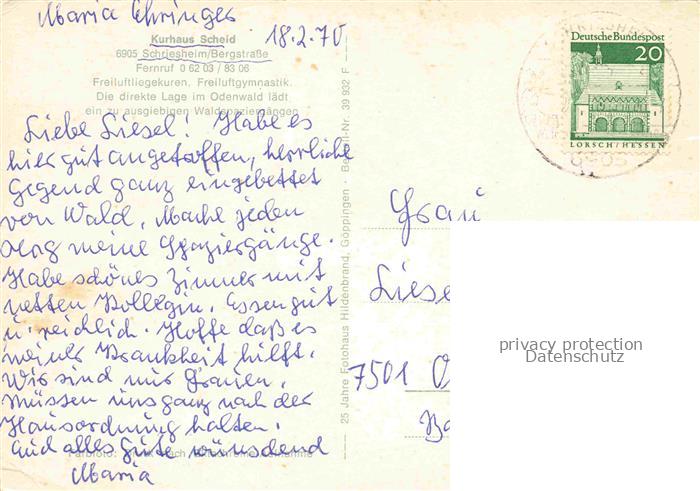 74048952 alte Postkarte Schriesheim Kurhaus Scheid Gastraeume Park postalisch gelaufen Erhaltung siehe scans [WerneD78] KatCode: 11110008226082