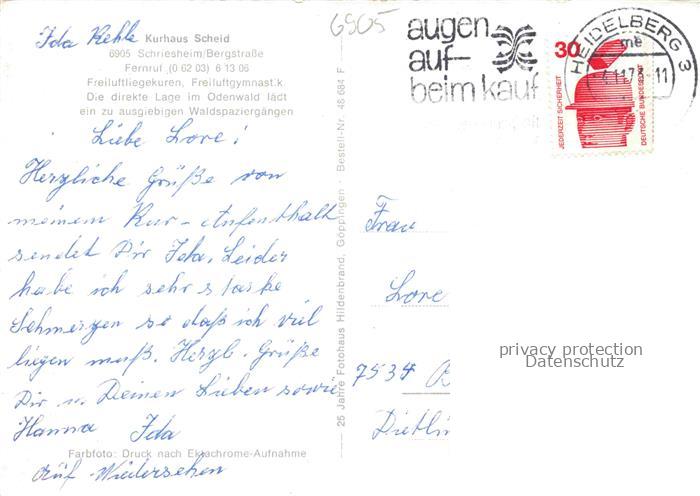 74048887 alte Postkarte Schriesheim Kurhaus Scheid Kirche Rathaus Strahlenburg postalisch gelaufen Erhaltung siehe scans [WerneD78] KatCode: 11110008226082