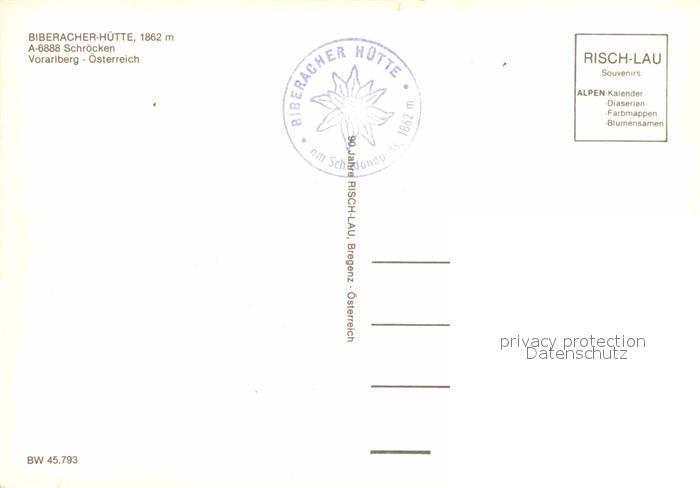 72674742 Schroecken Vorarlberg Biberacher Huette Kuenzelspitze Giglturm postalisch nicht gelaufen Erhaltung siehe scans [WerneD78] KatCode: 11390341080234
