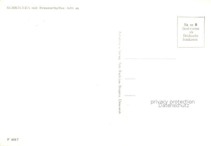 73288908 Schroecken Vorarlberg Braunarlspitze postalisch nicht gelaufen Erhaltung siehe scans [KathaD81] KatCode: 11390341080234