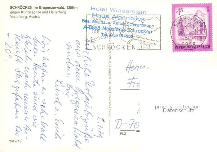 73315348 alte Postkarte Schroecken Vorarlberg Bregenzerwald Kuenzelspitze Heiterberg postalisch gelaufen Erhaltung siehe scans [LiesaD40] KatCode: 11390341080234