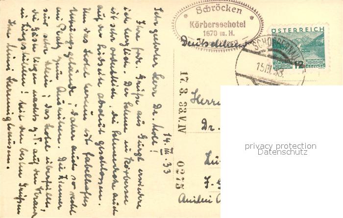 43076473 alte Postkarte Schroecken Vorarlberg Koerberseehotel postalisch gelaufen Erhaltung siehe scans [WerneD78] KatCode: 11390341080234