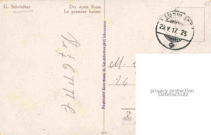 74061655 alte Postkarte SCHRoeDTER G. Kuenstlerkarte Der erste Kuss postalisch gelaufen Erhaltung siehe scans [IrynaD87] KatCode: 22240000003200