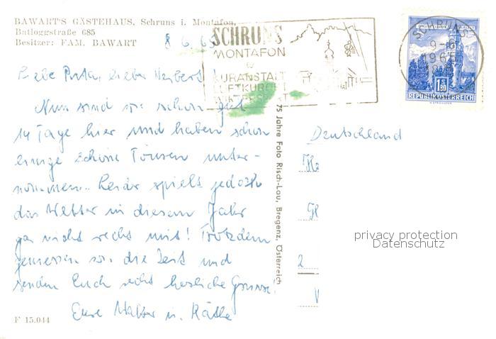 73779659 alte Postkarte Schruns Tschagguns Bawarts Gaestehaus postalisch gelaufen Erhaltung siehe scans [WerneD78] KatCode: 11390341080122