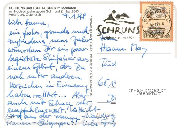 73366964 alte Postkarte Schruns Tschagguns Hochjochseilbahn Golm Zimba postalisch gelaufen Erhaltung siehe scans [LiesaD40] KatCode: 11390341080122