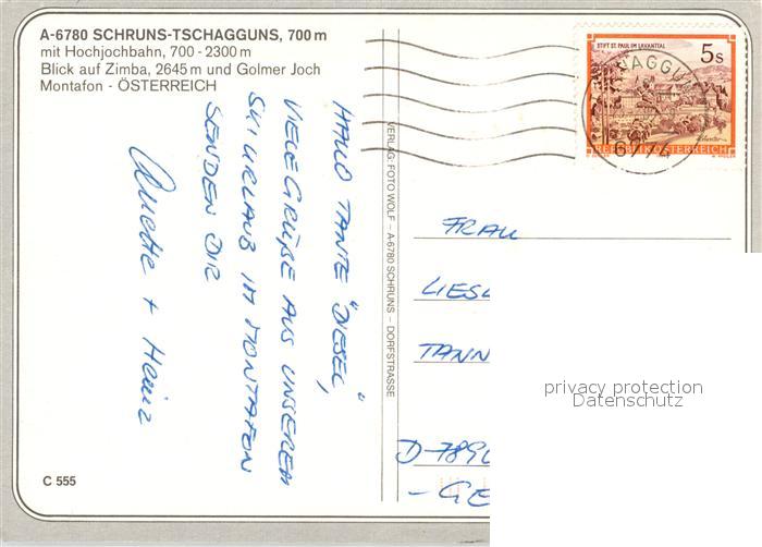 73280515 alte Postkarte Schruns Tschagguns mit Hochjochbahn Zimba und Golmer Joch postalisch gelaufen Erhaltung siehe scans [WerneD78] KatCode: 11390341080122