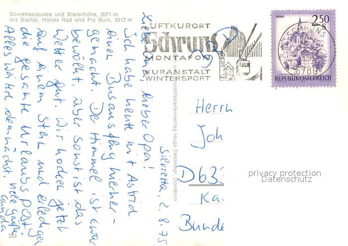73592918 alte Postkarte Schruns Tschagguns Silvrettastausee Bielerh?he Bieltal Piz-Buin postalisch gelaufen Erhaltung siehe scans [LiesaD40] KatCode: 11390341080122