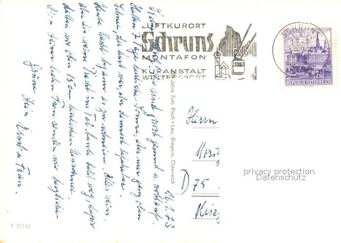 73312386 alte Postkarte Schruns Tschagguns uebersichtskarte Skiparadies Wintersportgebiet Alpen Bergbahn Skipiste postalisch gelaufen Erhaltung siehe scans [FriedD77] KatCode: 11390341080122