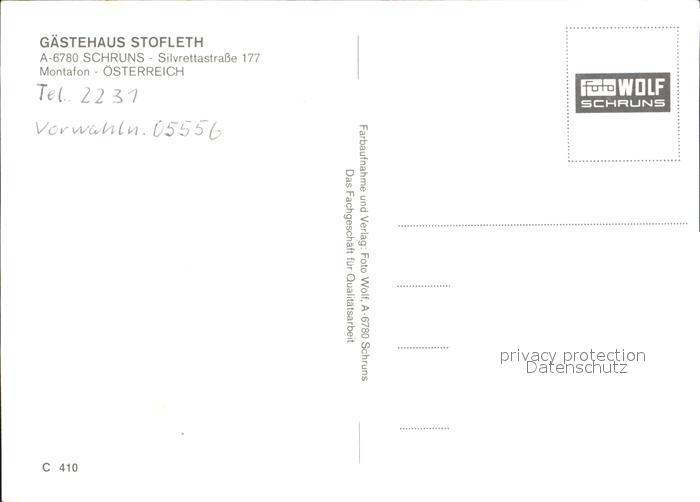 72235214 Schruns Vorarlberg Gaestehaus Stoftleth postalisch nicht gelaufen Erhaltung siehe scans KatCode: 11390341080122