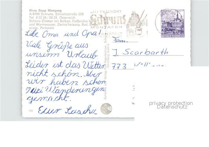 72485372 alte Postkarte Schruns Vorarlberg Haus Mangeng postalisch gelaufen Erhaltung siehe scans KatCode: 11390341080122