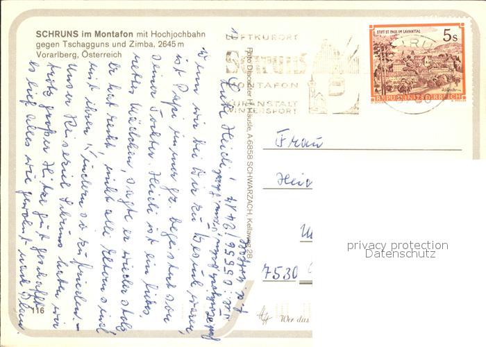 71926647 alte Postkarte Schruns Vorarlberg Hochjochbahn Tschagguns und Zimba postalisch gelaufen Erhaltung siehe scans KatCode: 11390341080122