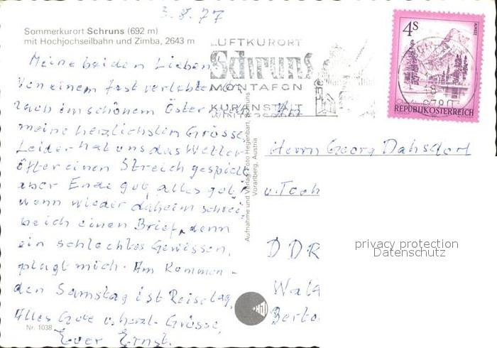 72349246 alte Postkarte Schruns Vorarlberg Hochjochseilbahn Zimba postalisch gelaufen Erhaltung siehe scans KatCode: 11390341080122