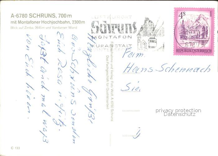 72591284 alte Postkarte Schruns Vorarlberg mit Montafoner Hochjochbahn postalisch gelaufen Erhaltung siehe scans [WerneD78] KatCode: 11390341080122
