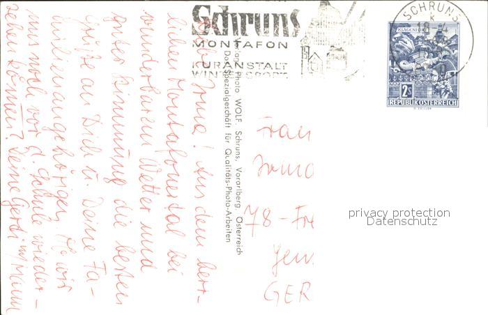 72335436 alte Postkarte Schruns Vorarlberg Silvretta Stausee gegen Piz Buin Alpen postalisch gelaufen Erhaltung siehe scans KatCode: 11390341080122
