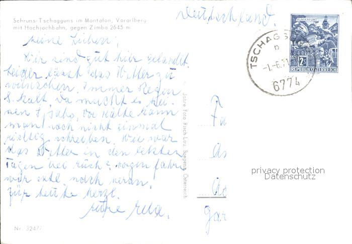 72370929 alte Postkarte Schruns Vorarlberg Tschagguns Zimba Bergbahn Hochjoch postalisch gelaufen Erhaltung siehe scans KatCode: 11390341080122