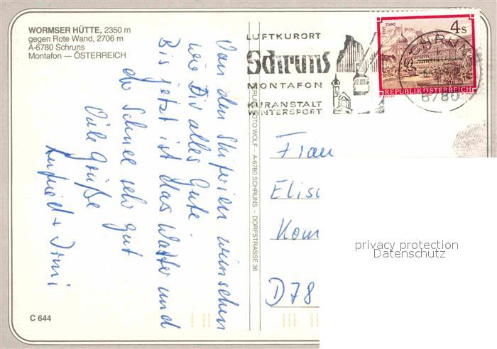 72900282 alte Postkarte Schruns Vorarlberg Wormser Huette postalisch gelaufen Erhaltung siehe scans [LiesaD40] KatCode: 11390341080122