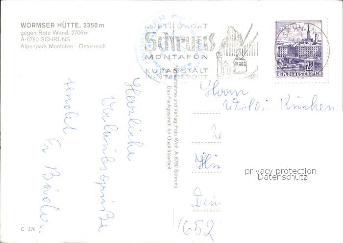 72113032 alte Postkarte Schruns Vorarlberg Wormser Huette Alpenpark Montafon postalisch gelaufen Erhaltung siehe scans KatCode: 11390341080122