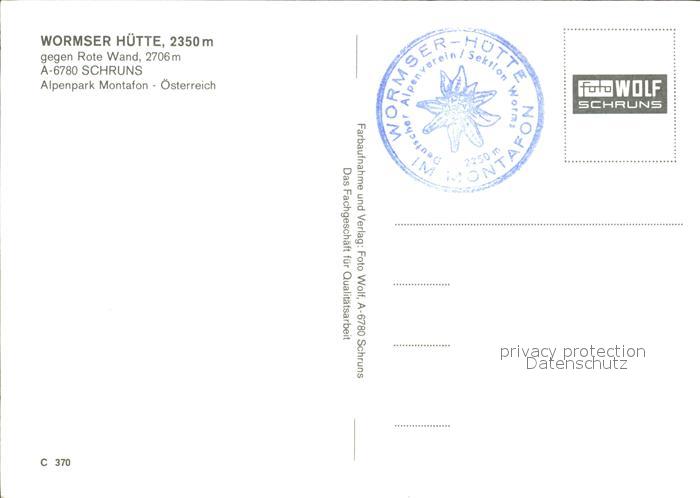 72257168 Schruns Vorarlberg Wormser Huette mit Rote Wand postalisch nicht gelaufen Erhaltung siehe scans KatCode: 11390341080122