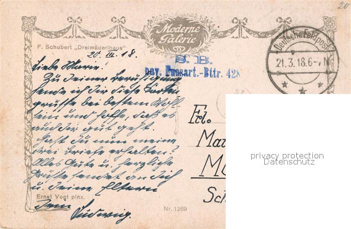 43019545 Schubert Franz Dreimäderlhaus Künstlerkarte Ernst Vogt Moderne-Galerie-Nr. 1269 KatCode 22400000000900