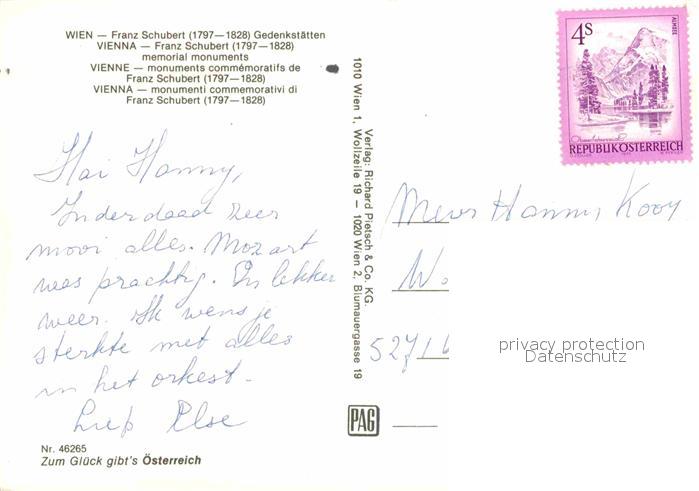 Schubert Franz Geburtshaus Konzerthaus Hoeldrichsmuehle Grabdenkmal postalisch nicht gelaufen Erhaltung siehe scans [PaolaD17]