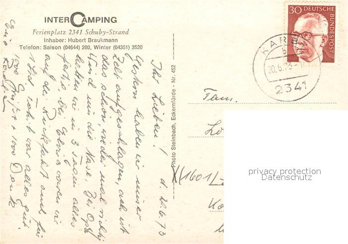 73670575 alte Postkarte Schuby Campingplatz am Strand Einkaufsladen Gaststaette postalisch gelaufen Erhaltung siehe scans [FriedD77] KatCode: 11110001059077