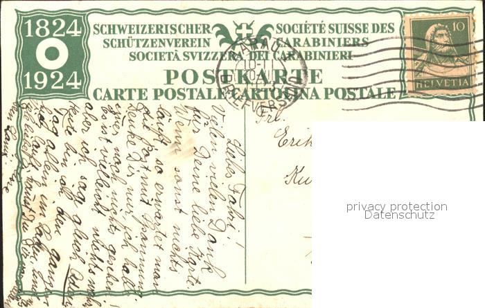 alte Postkarte Schuetzensport Zielscheibe Pfeife Schuetzenverein Schweiz J. E. Hugentobler postalisch gelaufen Erhaltung siehe scans