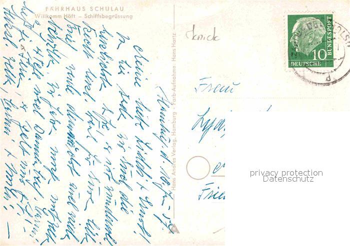 72913736 alte Postkarte Schulau Wedel Faehrhaus Willkommen Hoeft postalisch gelaufen Erhaltung siehe scans [LiesaD40] KatCode: 11110001056050