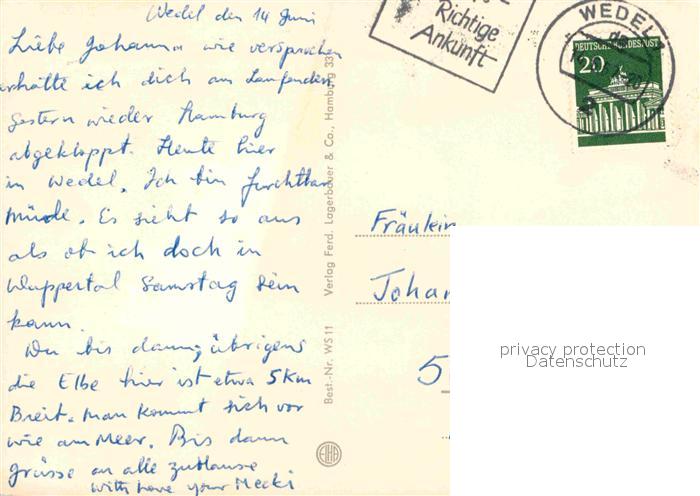 72680714 alte Postkarte Schulau Wedel Hochhaus am Bahnhof Hafen Faehrhausterrasse Roland Willkomm Hoeft Hafenstr Hanseatic Rathaus postalisch gelaufen Erhaltung siehe scans [WerneD78] KatCode: 11110001056050