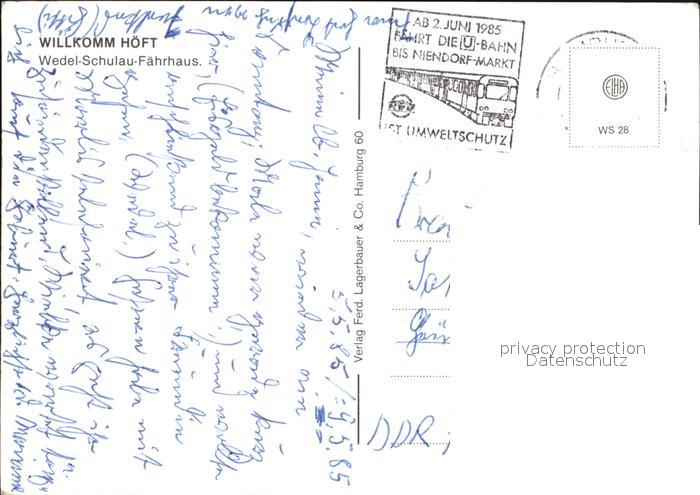 72535525 alte Postkarte Schulau Wedel Willkomm Hoeft postalisch gelaufen Erhaltung siehe scans [AndreD76 kt121box] KatCode: 11110001056050