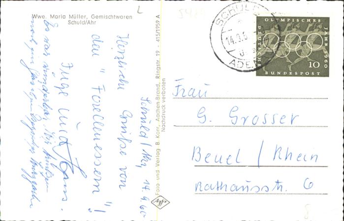 40930162 Schuld Ahr Ahrweiler Rheinland-Pfalz Ahr postalisch gelaufen Alte Ansichtskarte Postkarte alte Postkarte Katcode 11110007131074