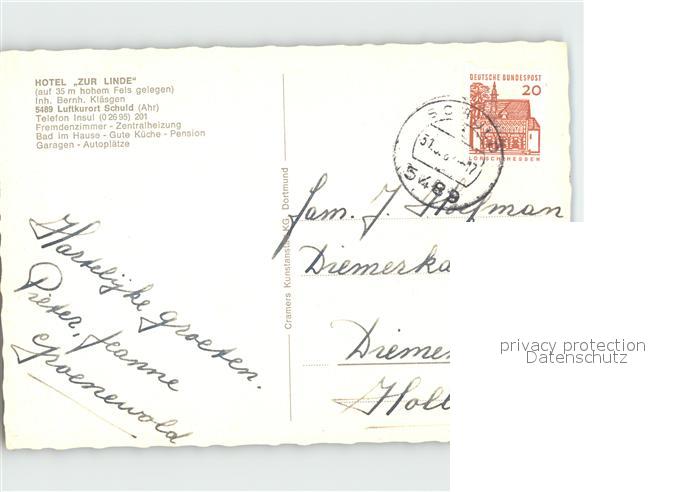 72136275 alte Postkarte Schuld Hotel Zur Linde Gastraum Bruecke postalisch gelaufen Erhaltung siehe scans KatCode: 11110007131074