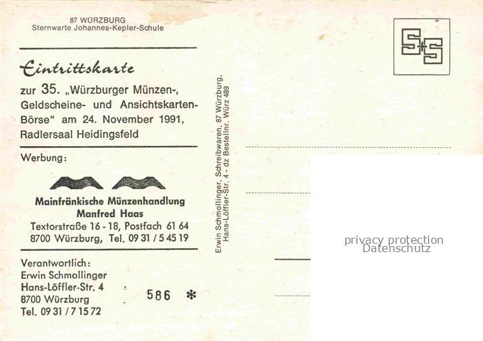 74051576 Schule School Ecole Escuela Scuola– Wuerzburg Sternwarte Johannes Kepler postalisch nicht gelaufen Erhaltung siehe scans [SanaeD93] KatCode: 22220000000700